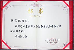 總經(jīng)理任北京家政協(xié)會(huì)理事會(huì)副秘書(shū)長(zhǎng)